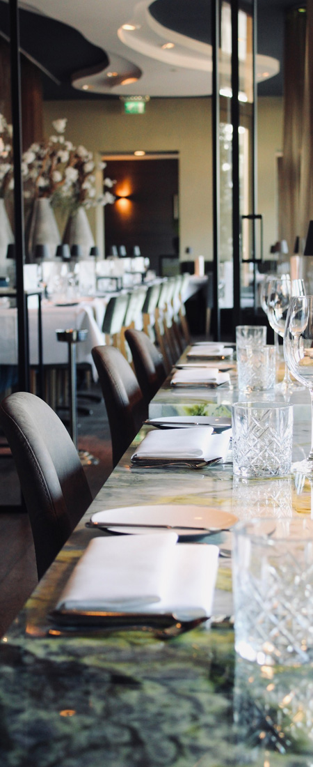 Ons Restaurant biedt een fine dining experience. De chef presenteert een verfijnd menu, dit kan 6, 5 of 4 gangen zijn voor respectievelijk €99 , € 85,50 of €72,50.